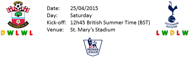 Overall I have 26% for a Spurs win, 28% for a draw and 46% for a Southampton win. Currently the best odds for a Spurs win can be found at Betvictor who are offering 11/4.
