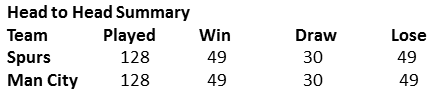 In our history we’ve played Manchester City 128 times, with both teams notching up 49 victories. At home we’ve won 32 out of 63 previous matches. We’ve suffered a few heavy defeats at the hands of City recently, conceding 15 goals in our last three encounters. In each of our two most recent meetings, we had a player sent off: Fazio last October, and Danny Rose last January.