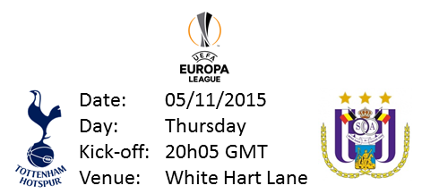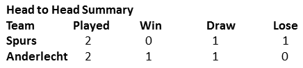 We lost the away fixture against Anderlecht 2-1, with Eriksen scoring our goal to take the lead early on. I think it will be a different story at the Lane, and we should overpower them. A lot, however, depends on who Pochettino chooses to rest ahead of the North London Derby.